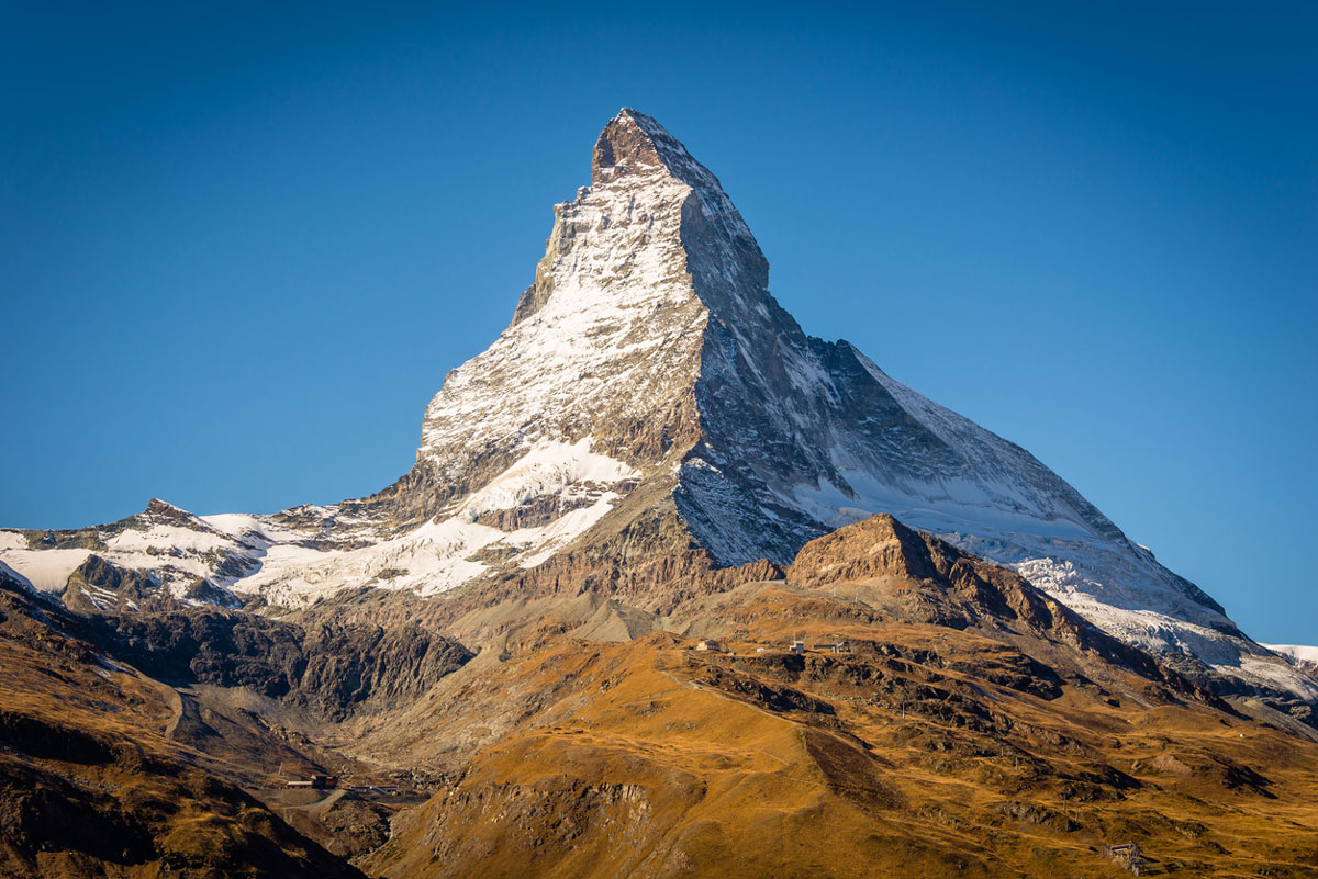Findeln is an idyllic hamlet high above Zermatt. The views of the surrounding mountain landscape and the majestic Matterhorn are breathtaking. This plateau can be reached either by taking the Sunnegga funicular followed by a short walk downhill, or by hiking uphill on the trails from Zermatt.